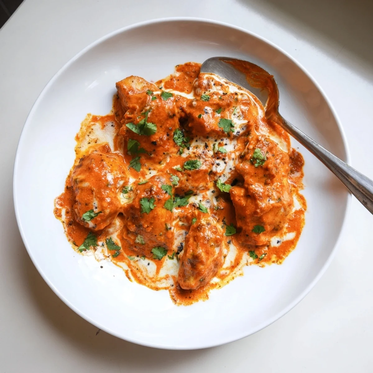 This North Indian classic features tender chicken thighs marinated in yogurt and aromatic spices, then grilled to perfection before simmering in a luxuriously creamy tomato-butter sauce. The velvety texture comes from heavy cream and kasuri methi, while garam masala, cumin, and coriander create layers of warming spice. Perfect for a satisfying dinner served over basmati rice or alongside garlic naan.