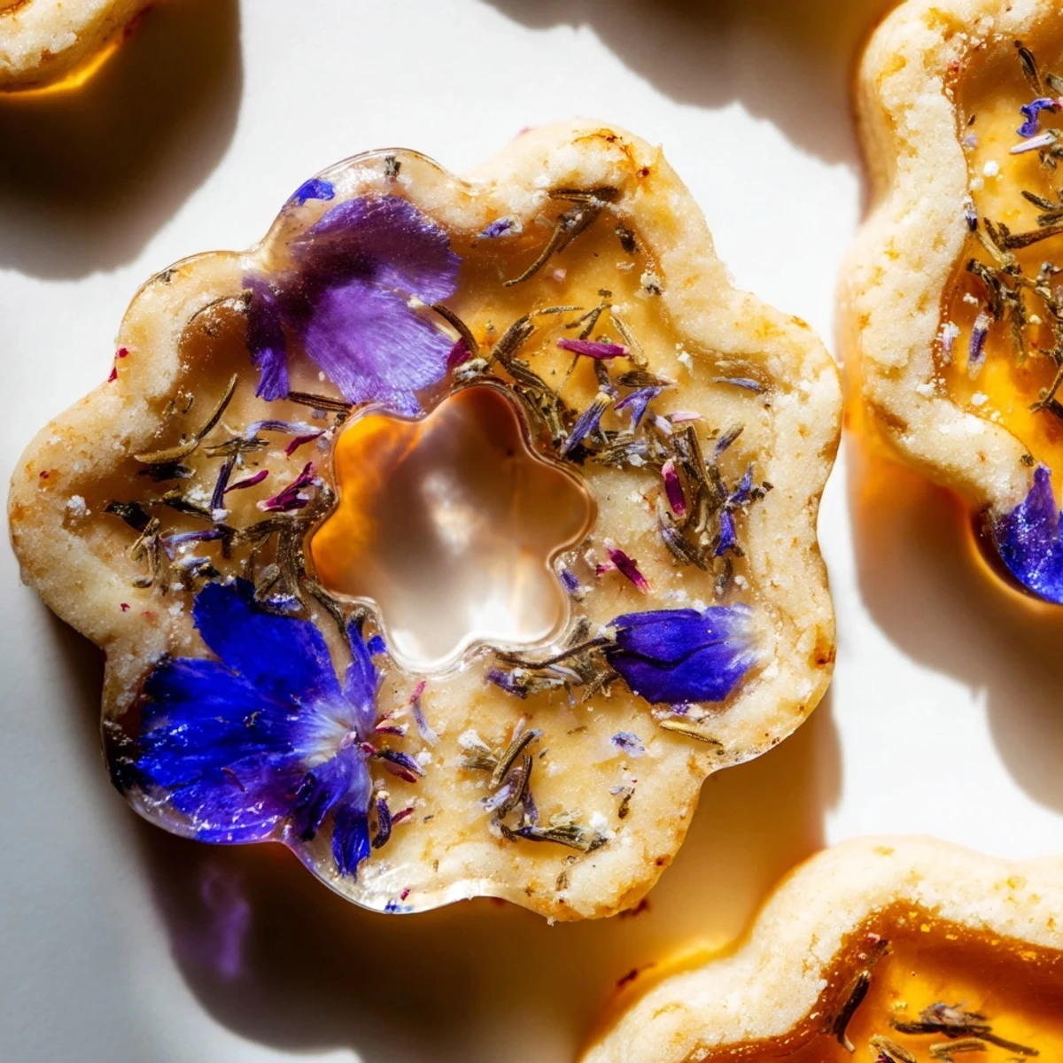 I have learned that some flowers work better than others in the candy centers. Delicate petals like rose and violet float beautifully, while larger blooms can overwhelm the design. Press them gently into the crushed candy before baking so they are partially suspended in the melted sugar.