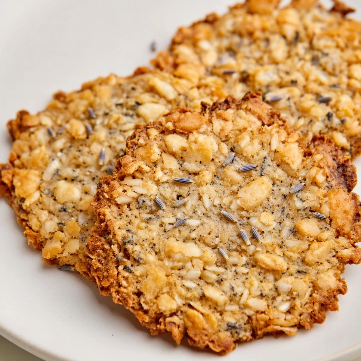 These delicately crisp treats combine aromatic lavender with golden honey for a sophisticated twist on classic cookies. The satisfying crunch comes from toasted almonds and puffed rice cereal, creating irresistible texture in every bite.