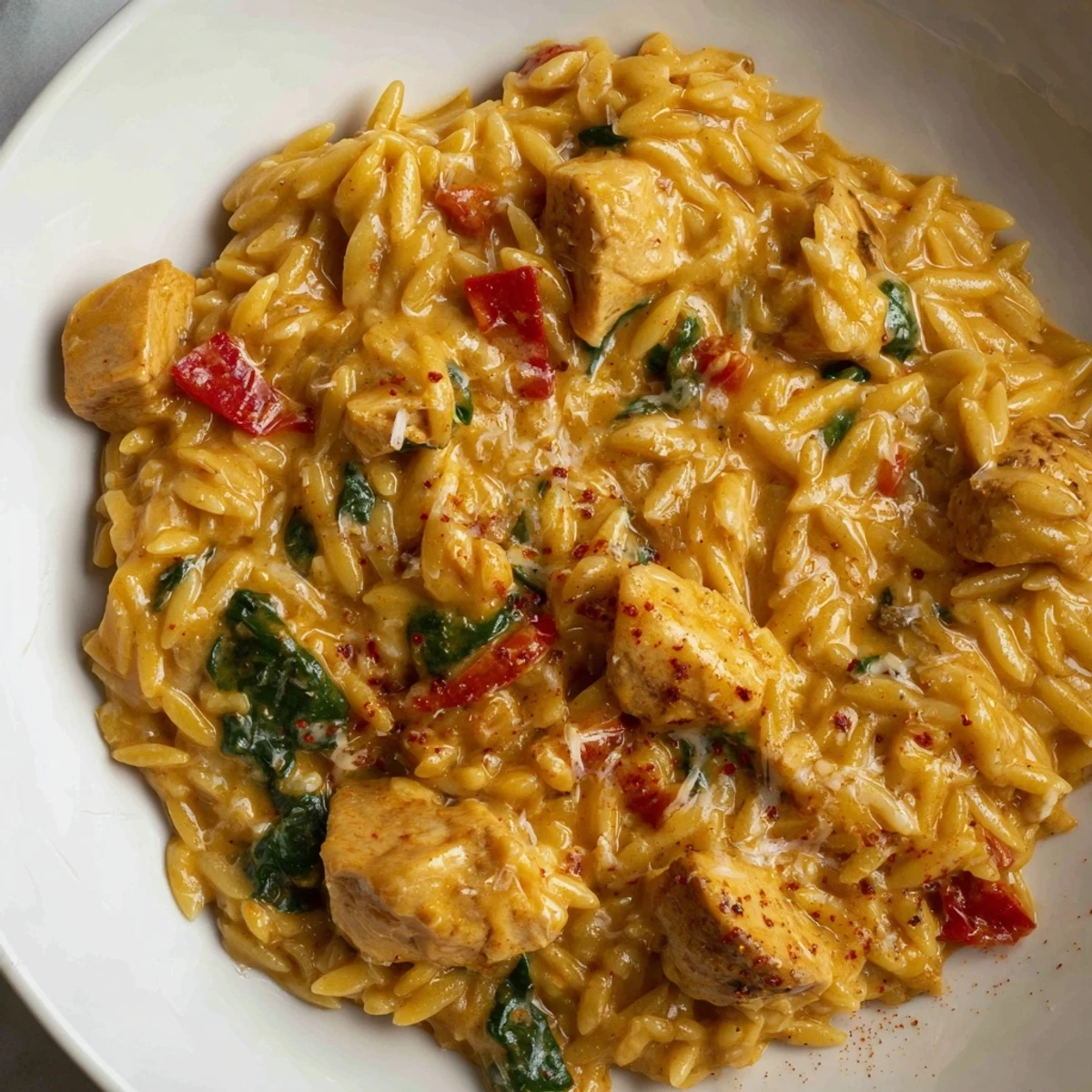 Store in an airtight container in the refrigerator for up to 3 days. Reheat gently on the stovetop with a splash of cream or broth to loosen the sauce—the orzo will continue absorbing liquid as it sits. Microwave reheating works too, though the stovetop yields better results.