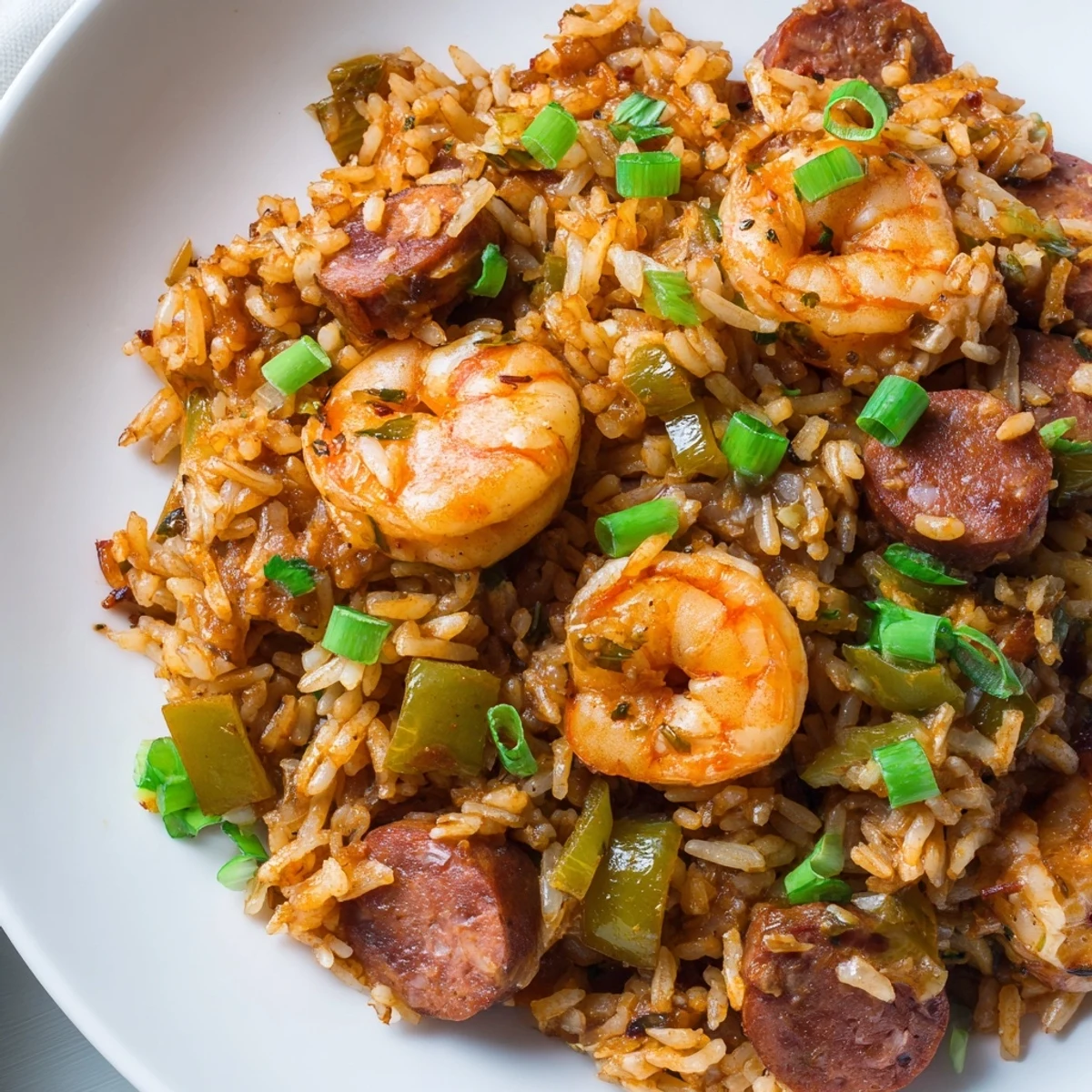 This hearty one-pan meal brings together juicy Gulf shrimp and spicy andouille sausage with the classic Southern holy trinity of onion, bell pepper, and celery. The rice absorbs all the savory flavors as it simmers in chicken broth, enhanced with tomato paste and traditional Creole seasonings including paprika, thyme, and a blend of aromatic spices. Ready in under an hour, this dish delivers authentic Creole comfort with minimal cleanup.